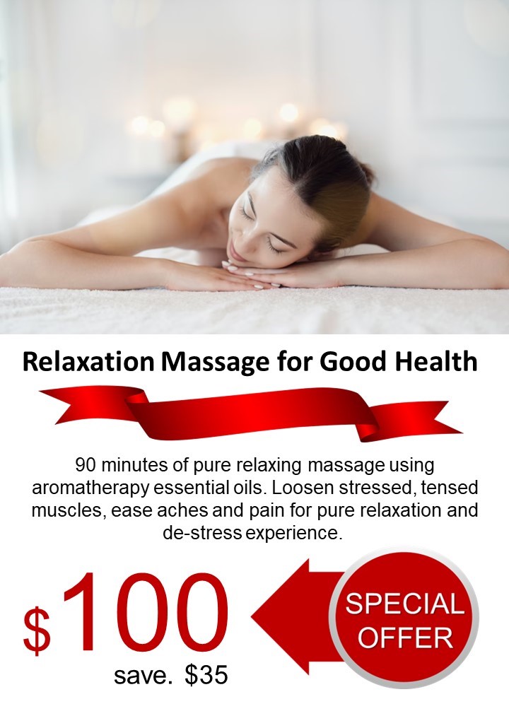 A complete relaxation massage experience. Offers a relaxing massage using aromatherapy essential oils which balances and harmonizes the mind and body. It combines slow, light stroking massage in one direction with deep pressure in another direction. The massage will help loosen stressed, tensed muscles, ease aches and pain for pure relaxation and de-stress experience.